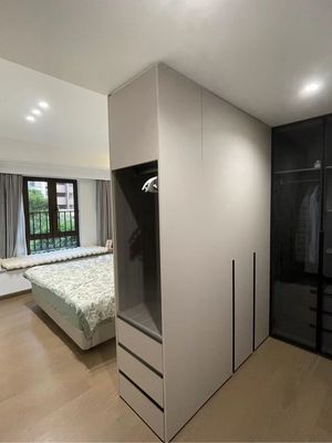 为了避免厕所对床,推荐装修方案大多数都会选择做L型衣柜,相当于有个独立的小衣帽间,不过要是空间不足就不建议选择L型衣柜。
